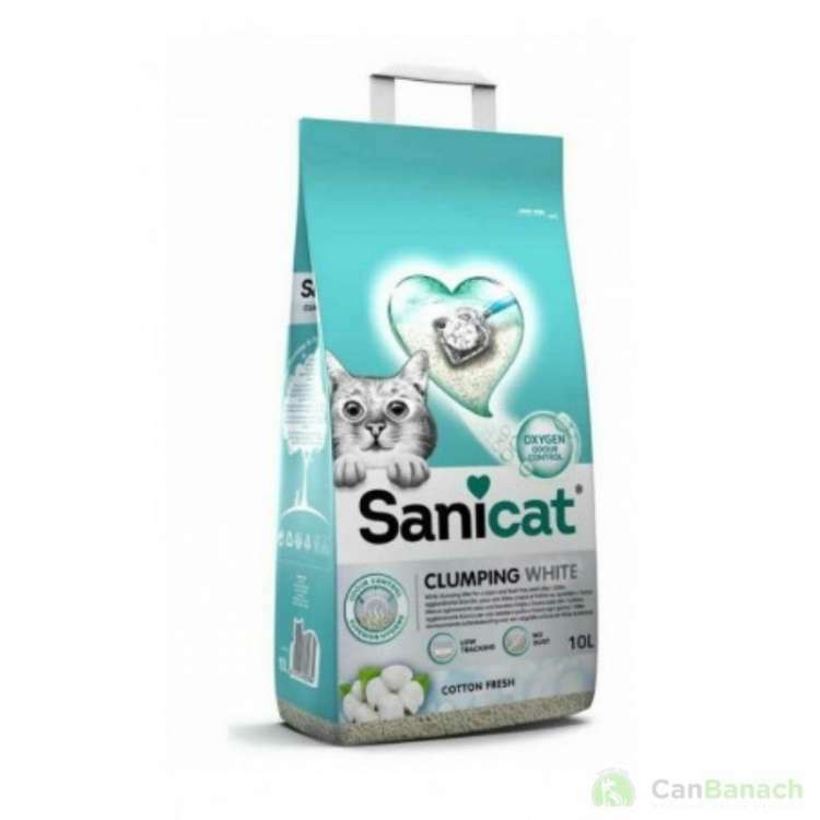 SANICAT CLUMPING WHITE COTTON FRESH es una arena con buena capacidad de aglomeración que produce aglomerados blancos fáciles de retirar. Gránulos gruesos para mantener la limpieza en torno a la bandeja.