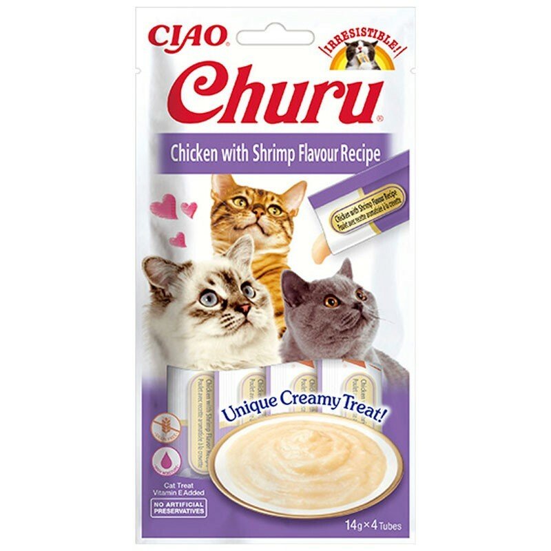 El Churu Snack Natural Pollo con Gambas para gatos es un delicioso snack elaborado sin cereales ni conservantes artificiales.