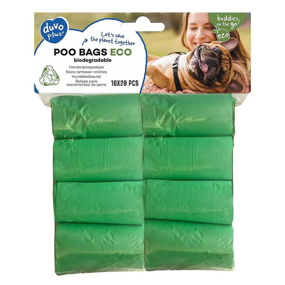 Las bolsas para caca son imprescindibles para un agradable paseo con tu perro. Estas bolsas de estiércol ECO biodegradables en un rollo duvoplus se reconocen por su color verde fresco y son adecuadas para casi todos los dispensadores de bolsas de estiércol. Para que puedas recoger los excrementos de tu perro de forma higiénica en cualquier momento.