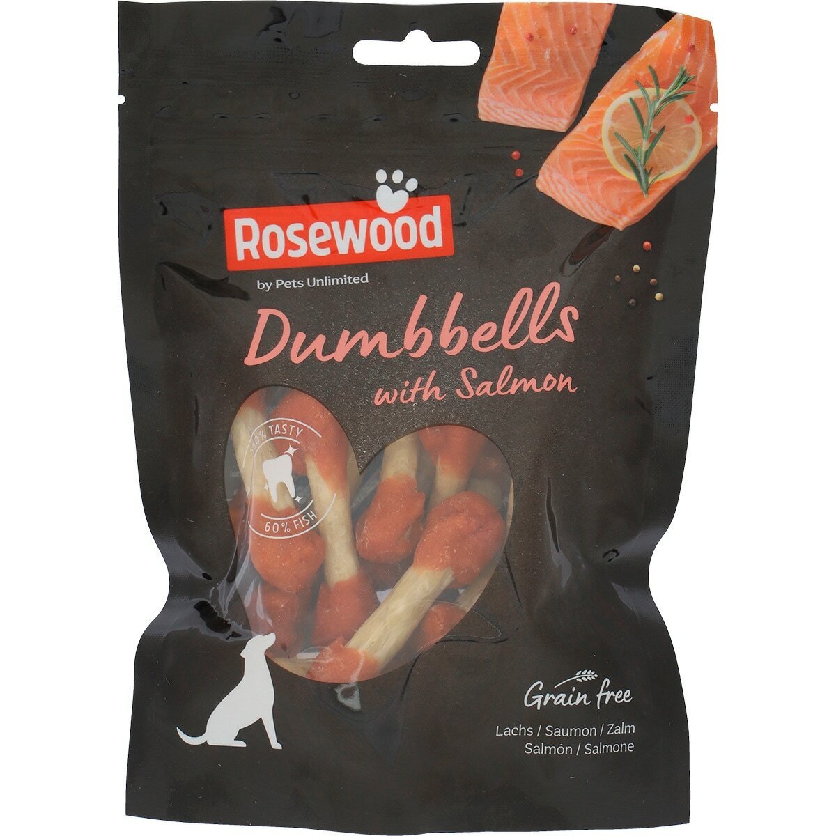 • Ingredientes: Salmón (60%), piel de vacío, almidón de patata.