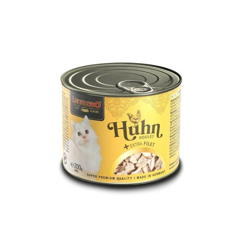 Nuestro suculento menú con filete para disfrutar del pollo en estado puro. Un alto contenido de carne de pollo de la mejor calidad, enriquecido con trozos de filete extra sabrosos. Cocinada suavemente en su propio jugo, se convierte en una irresistible delicia de carne con una experiencia de masticación especial. El aceite de salmón da el toque final a las recetas y aporta ácidos grasos poliinsaturados para un pelaje sedoso. Naturalmente sin azúcar ni colorantes, saborizantes ni conservantes artificiales.